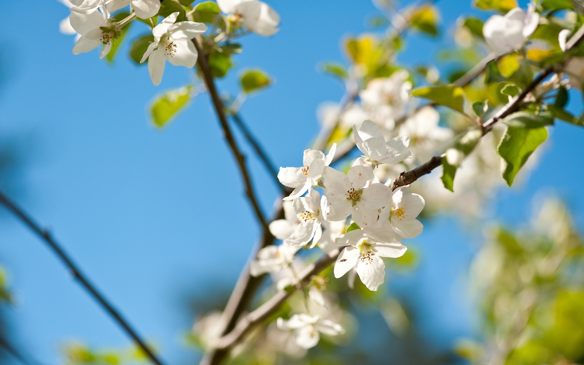Ramos de macieira em flores brancas