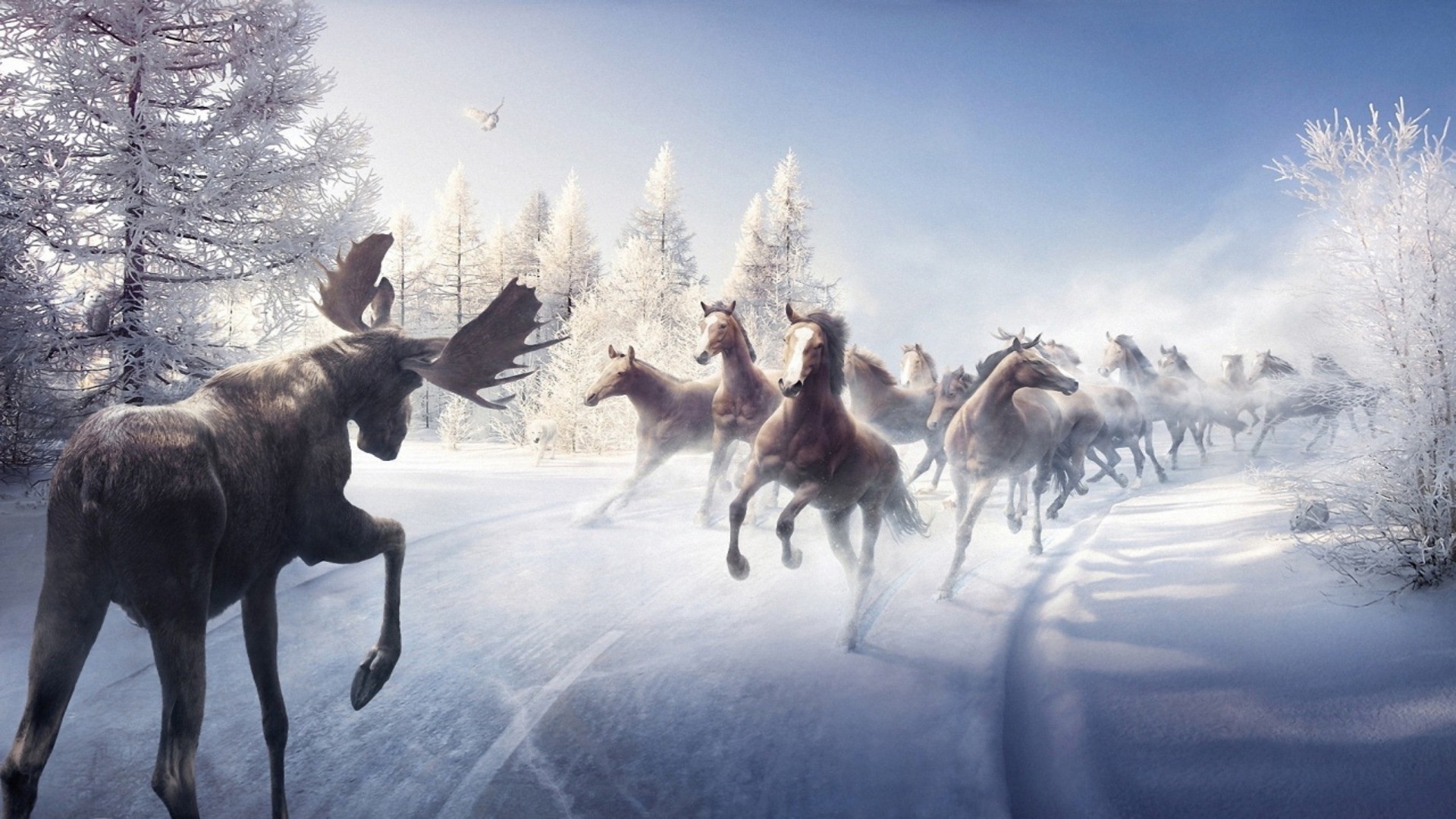 Desenho de casos de geada com um saco na floresta perto da árvore de Natal