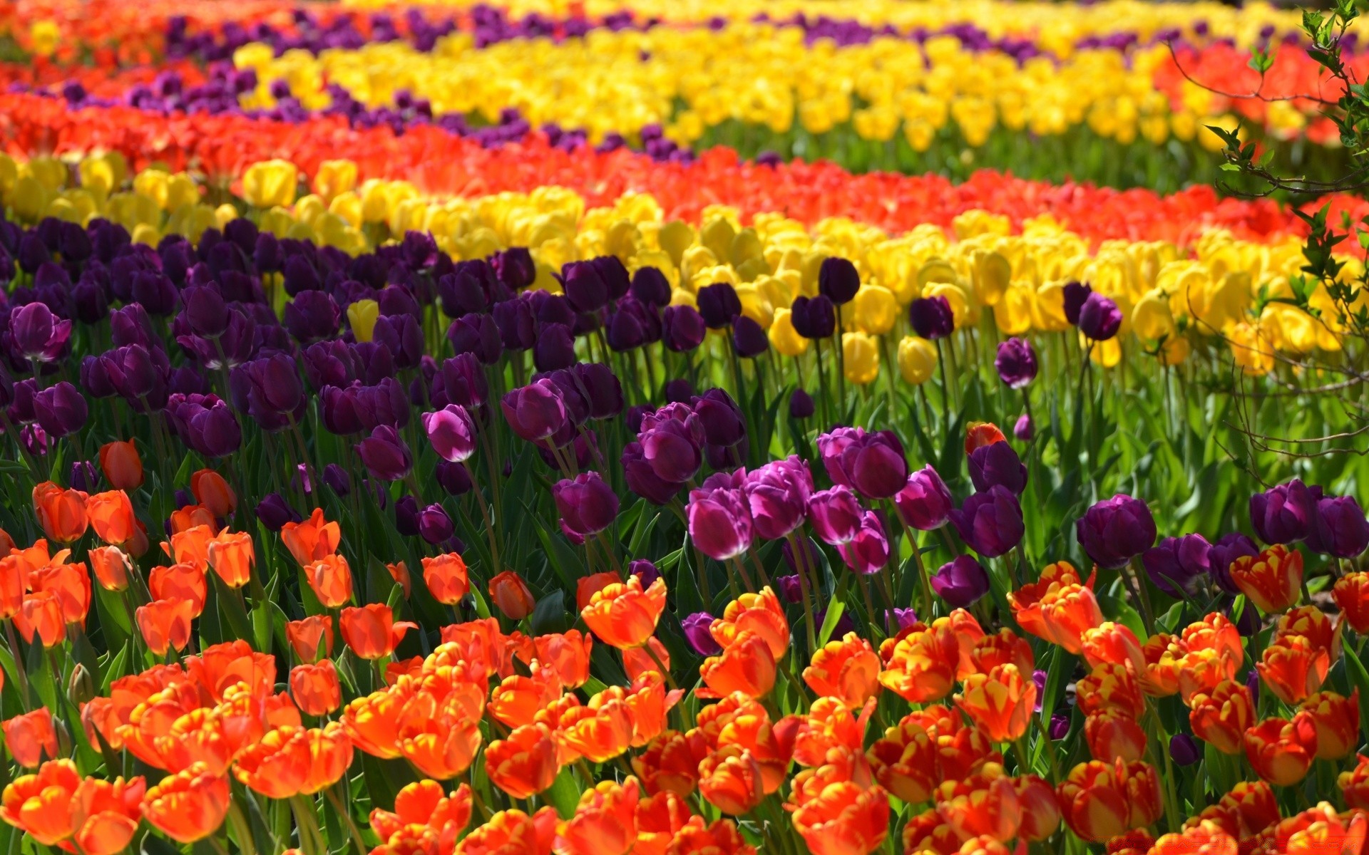 Grande canteiro de flores de tulipas