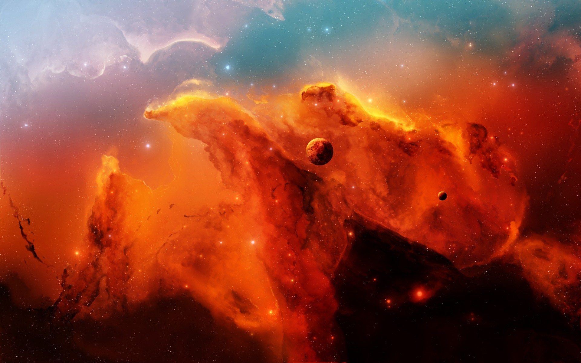Explosão de um planeta no espaço