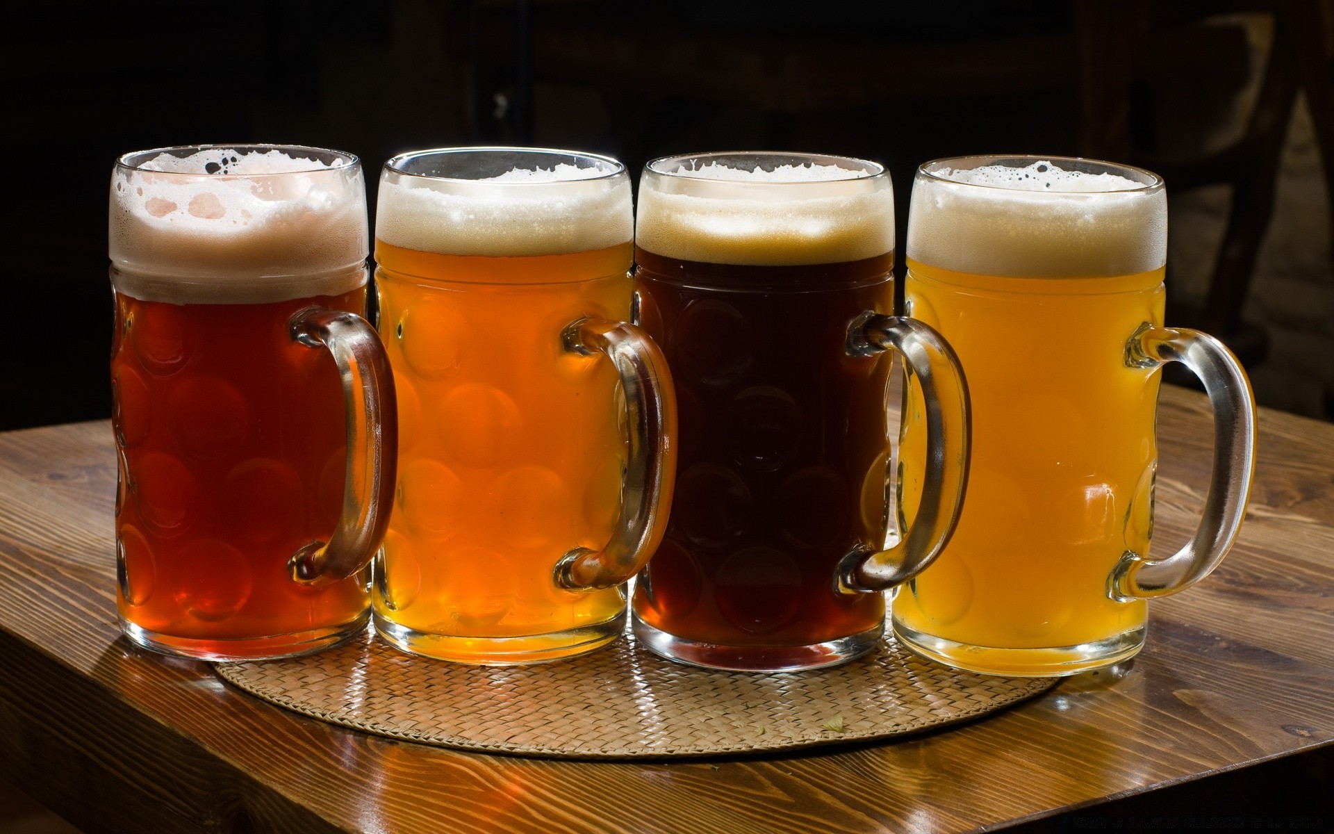 Quatro copos de cerveja com diferentes tipos de cerveja