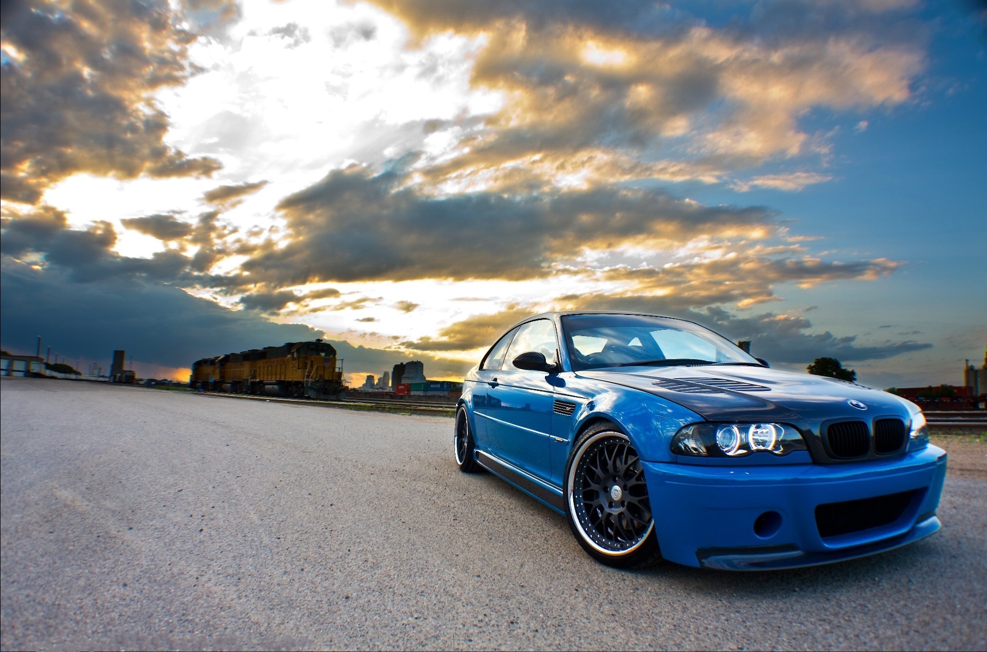 Paisagens áreas industriais, velocidade no asfalto molhado