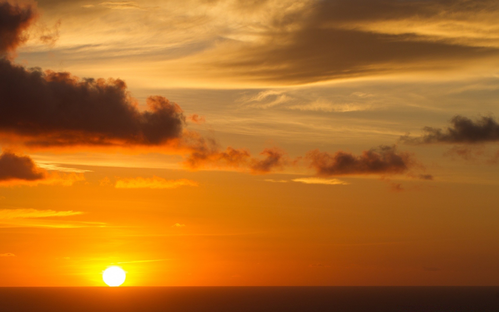 Paisagem com céu cintilante e montanhas ao pôr do sol