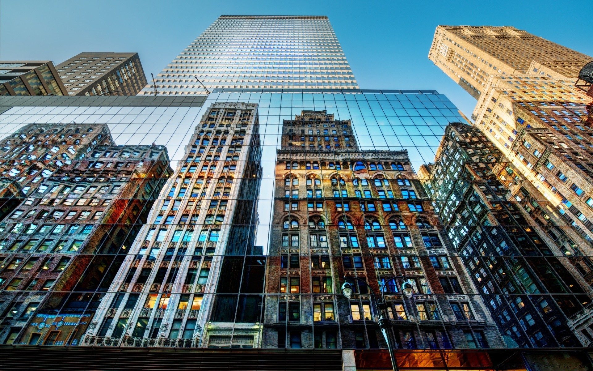 Arquitetura urbana refletida pelas paredes espelhadas de um arranha-céu