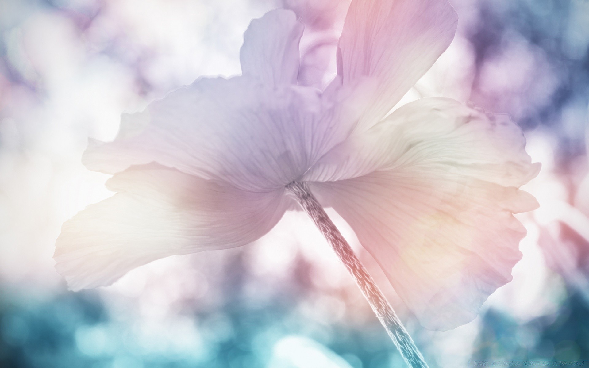 Foto delicada de uma flor em tons de rosa e azul