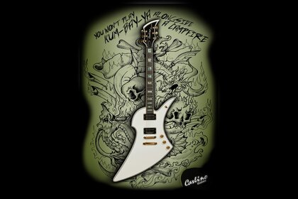 Guitarra em fundo de grafite preto e branco
