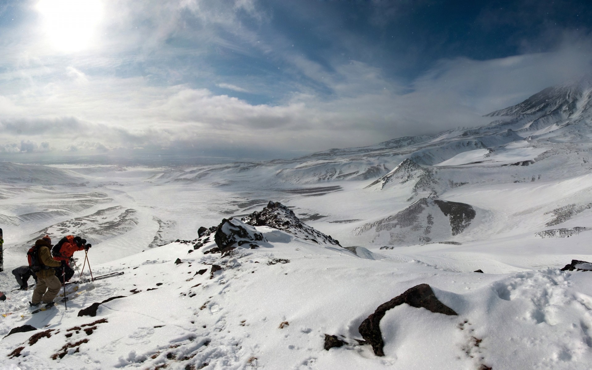 Escalada perigosa. Montanhas nevadas