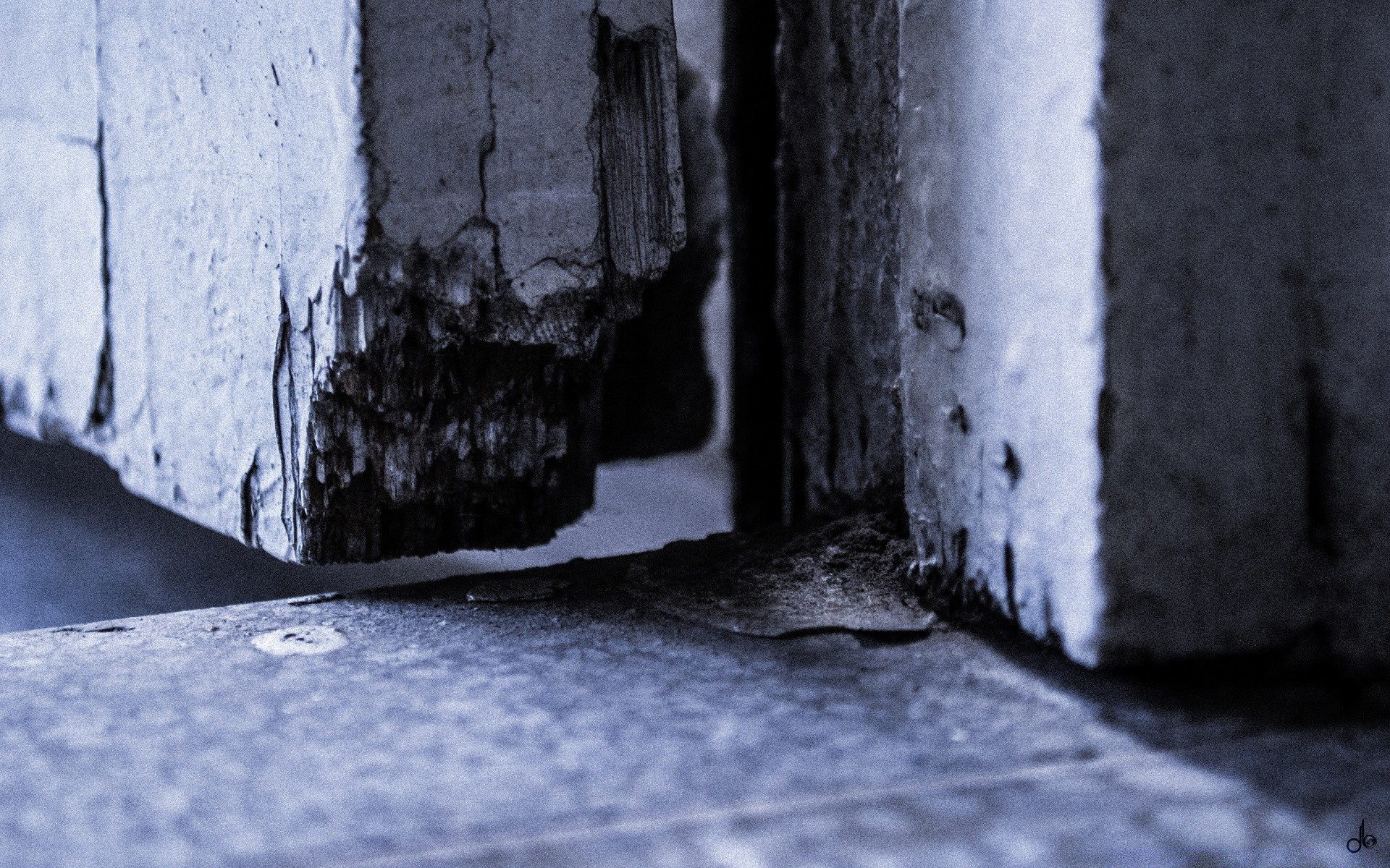 Uma velha parede de tijolos iluminada por um raio de lanterna