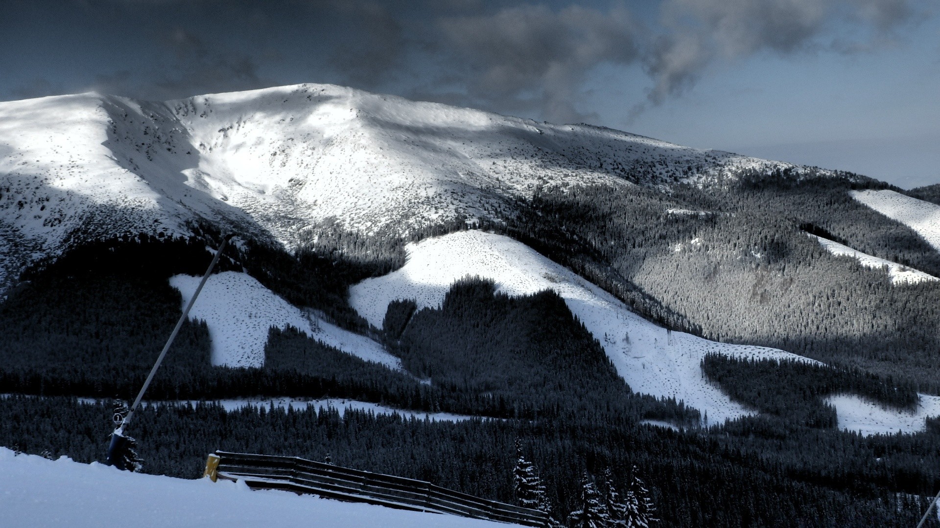 Montanhas nuas na neve