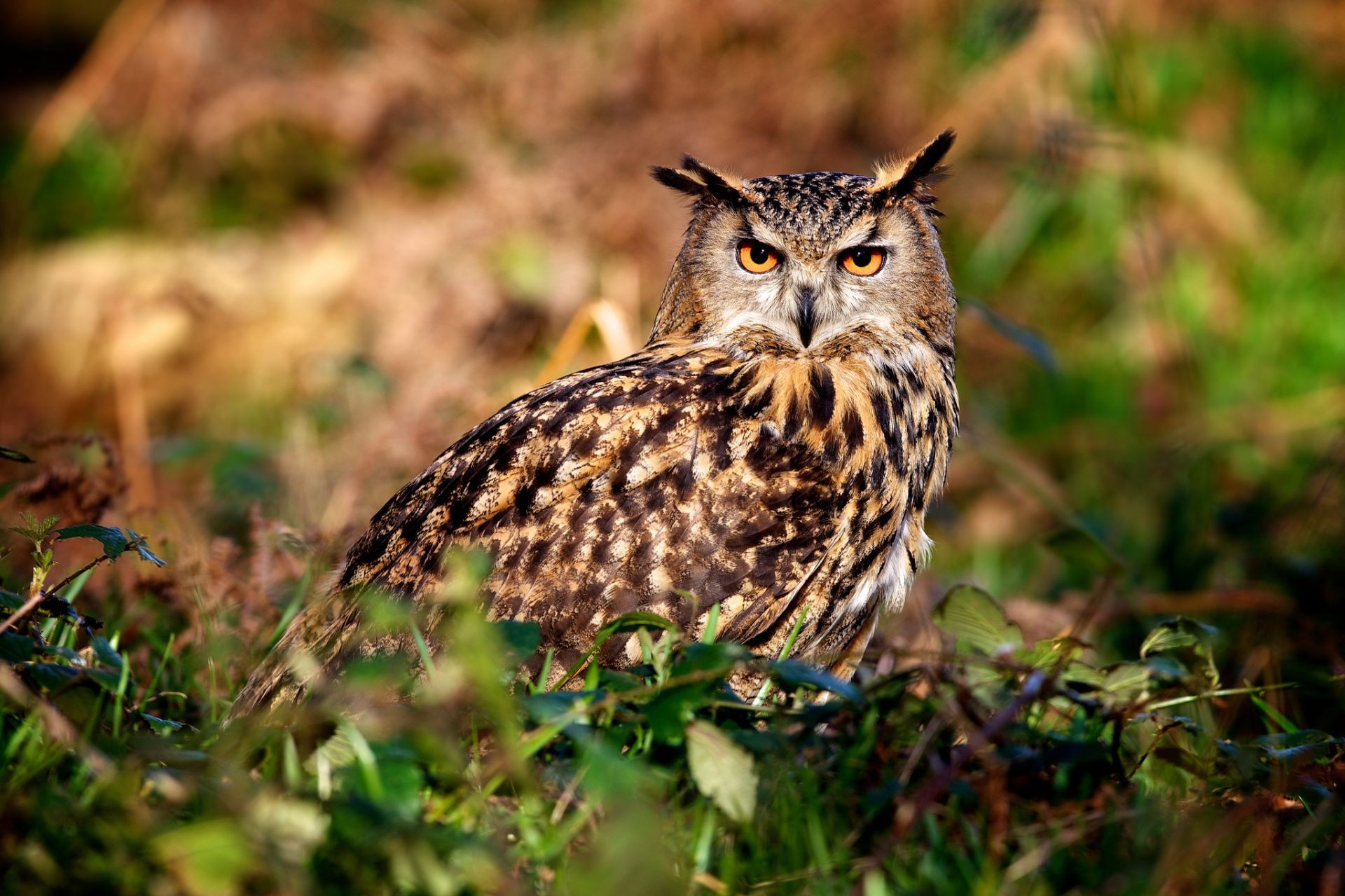 Misterioso, é um pássaro coruja. olhar fixo