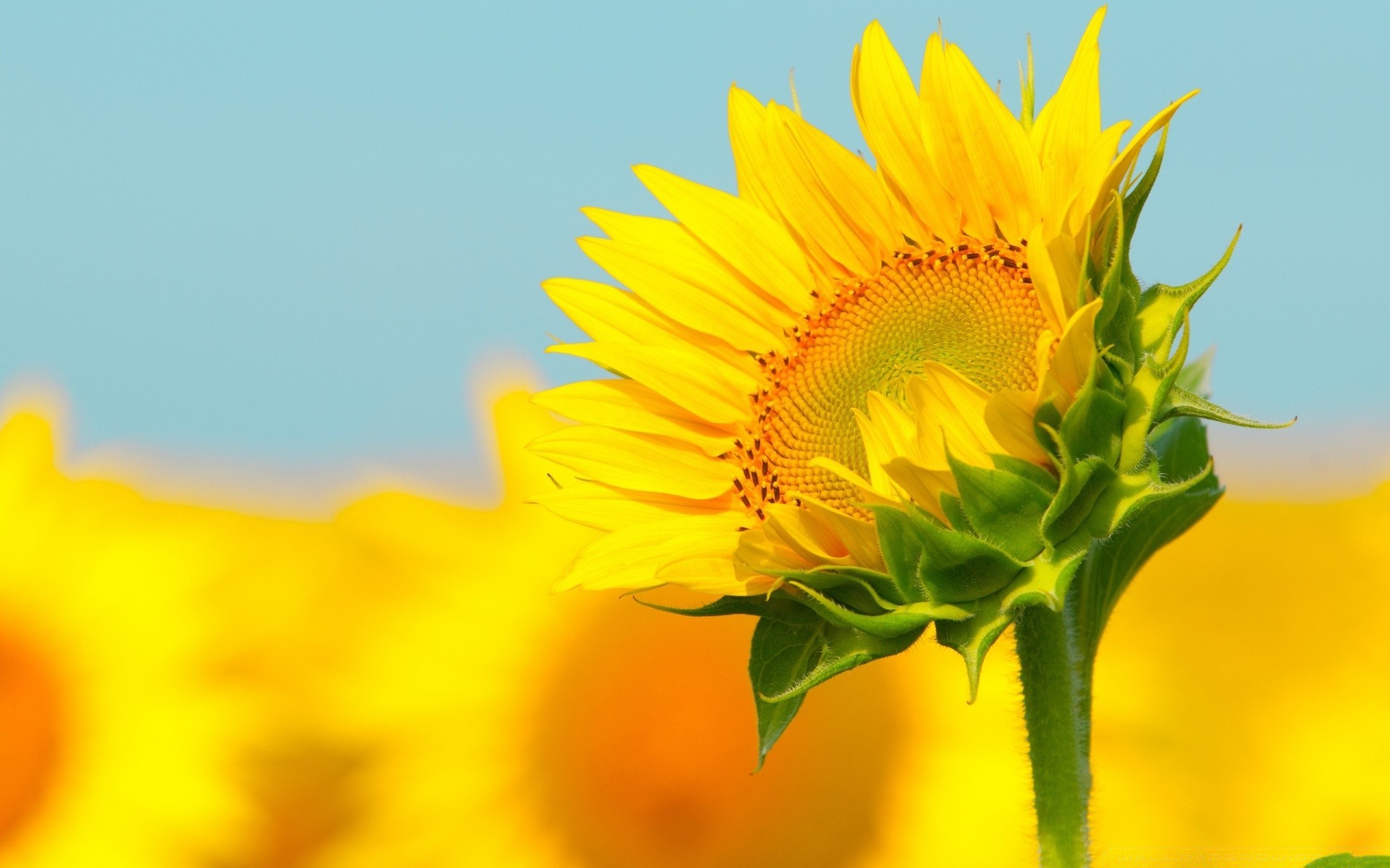 Arbusto de flores alaranjadas no fundo de muitos púrpura