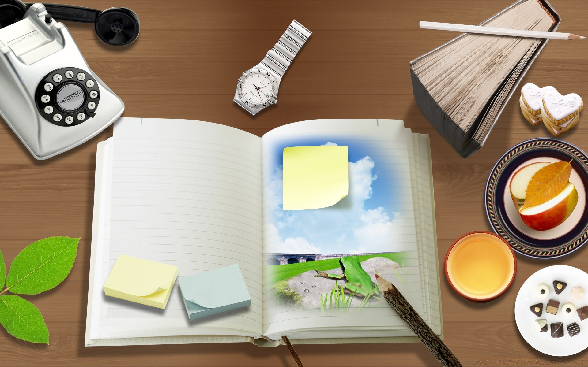 Foto criativa para o desktop com a imagem de madeira