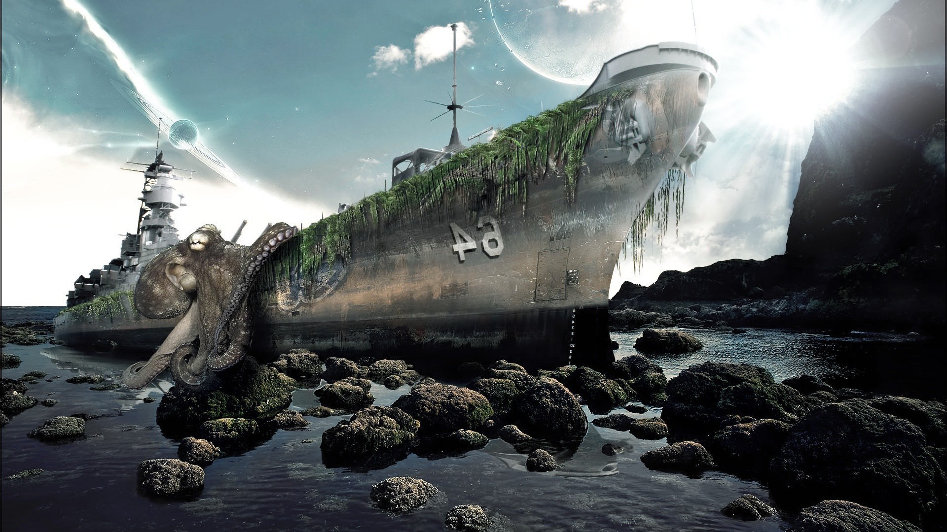 Polvo gigante e navio de guerra