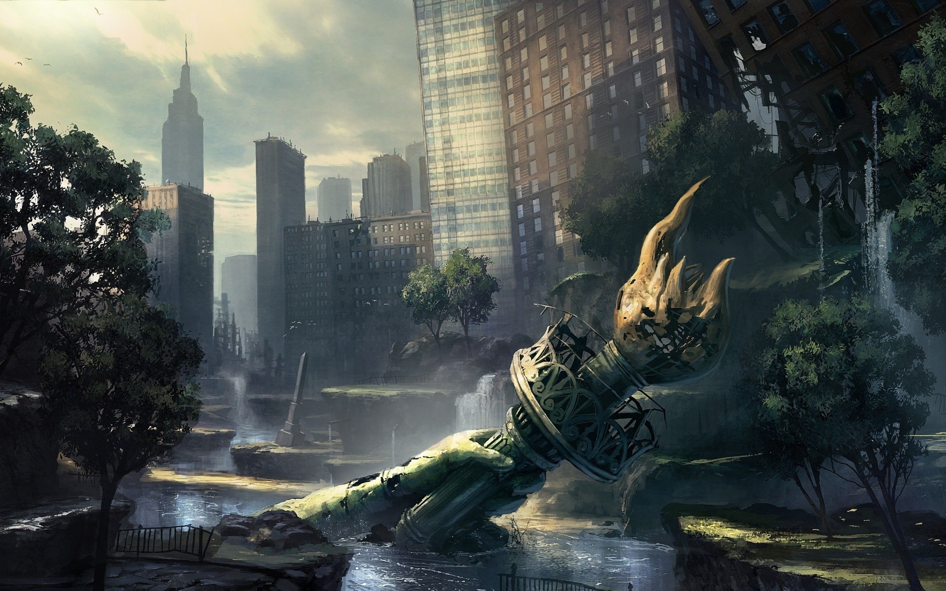 Bela vista da cidade destruída