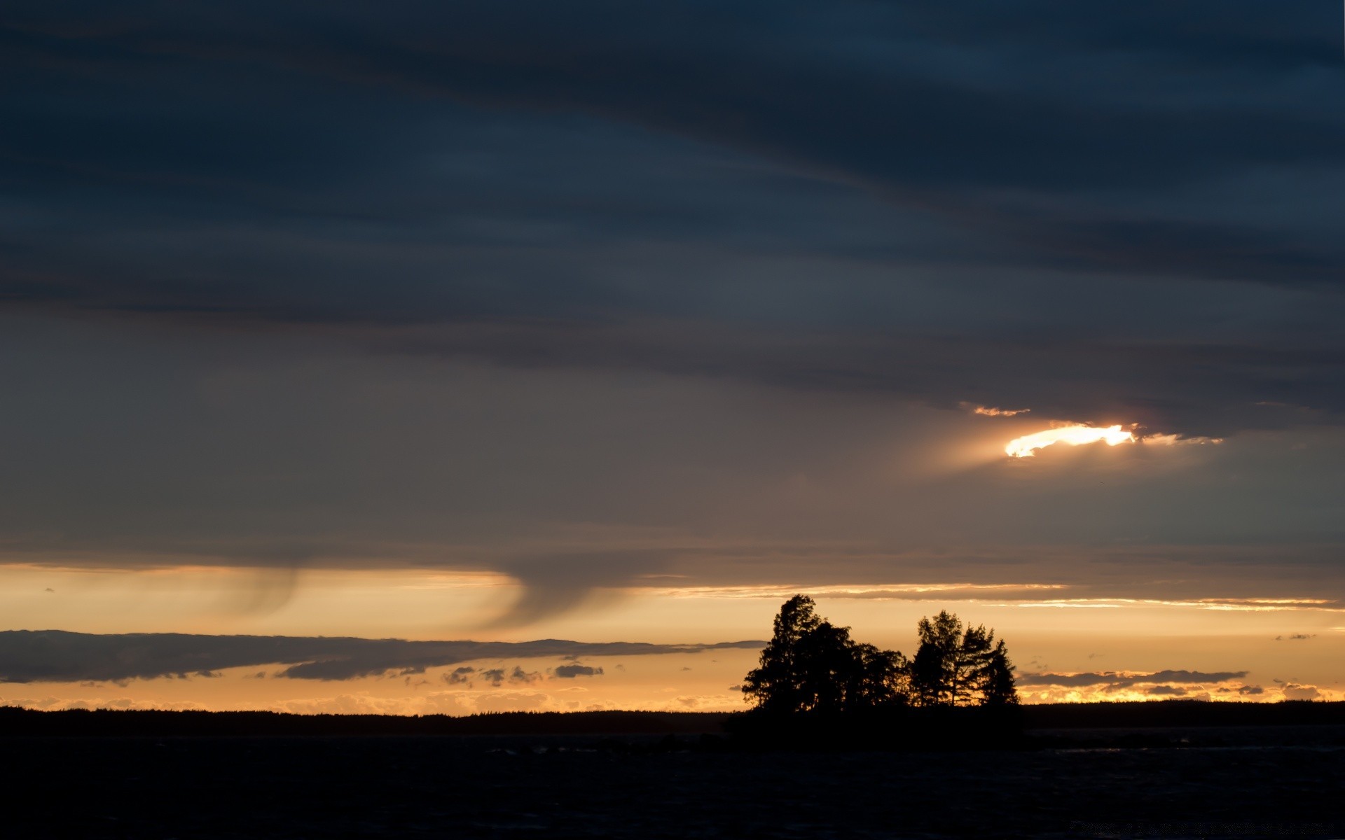 O pôr do sol se esconde atrás dos telhados escuros das casas em um céu laranja brilhanteO pôr do sol se esconde atrás dos telhados escuros das casas em um céu laranja brilhante
