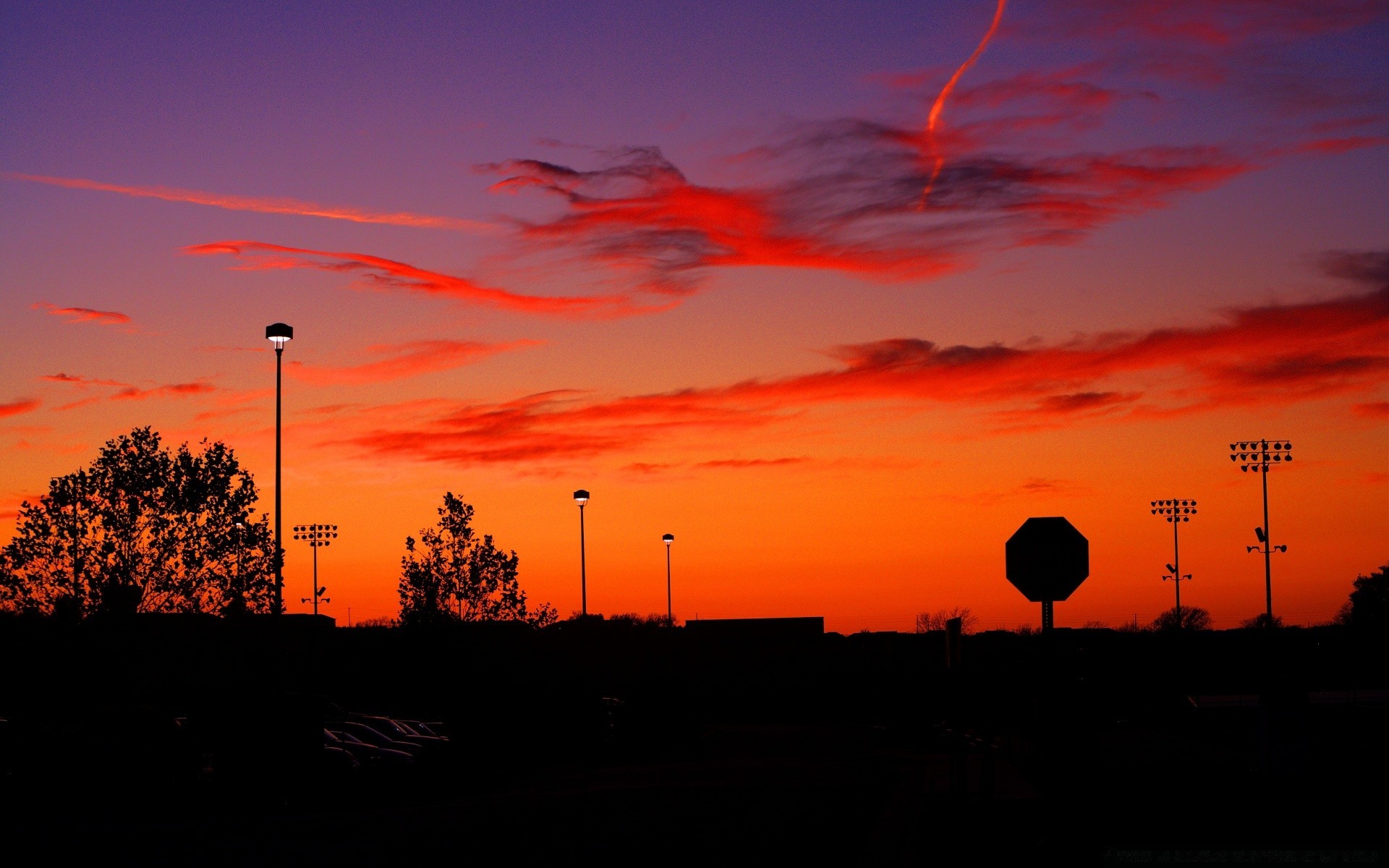 Pôr do sol vermelho sangue sobre as copas das árvores