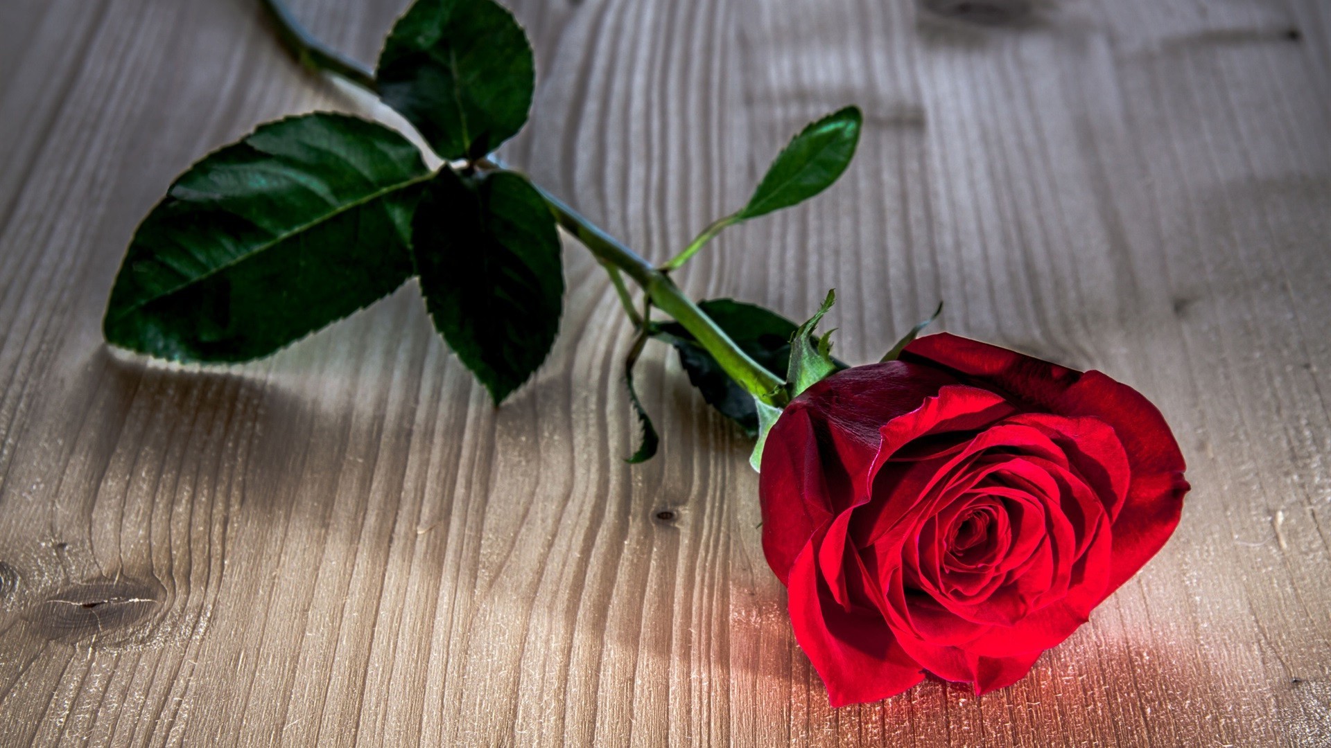 Rosa vermelha na mesa de madeira