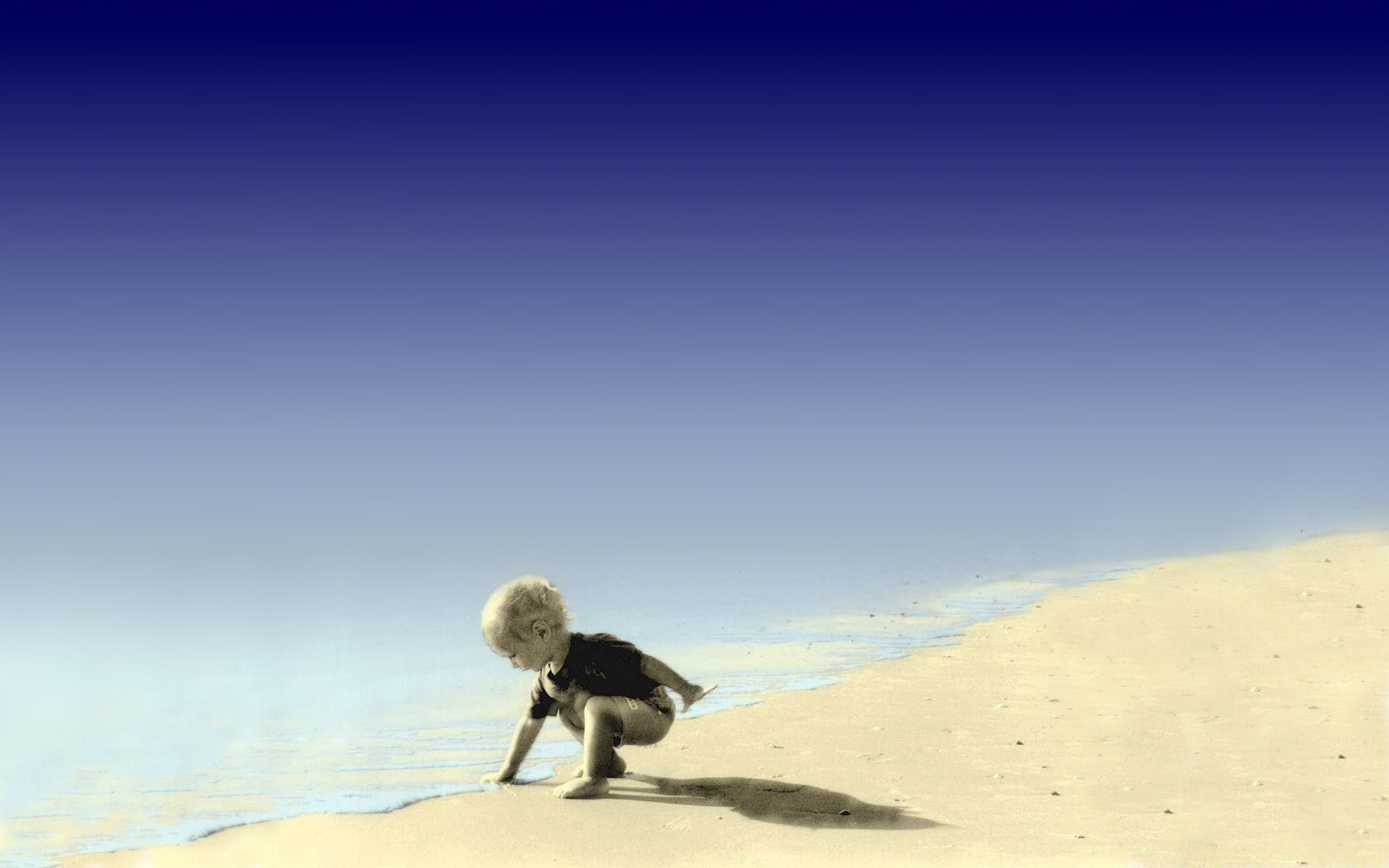 Menino loiro joga na praia