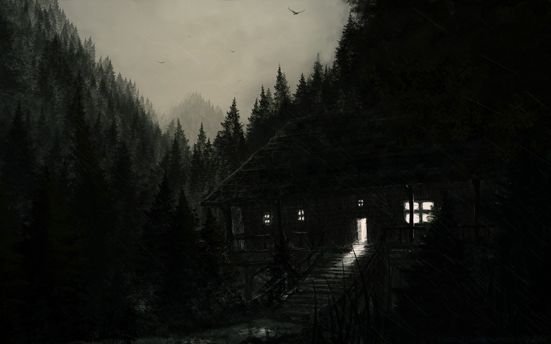 Casa na floresta da noite