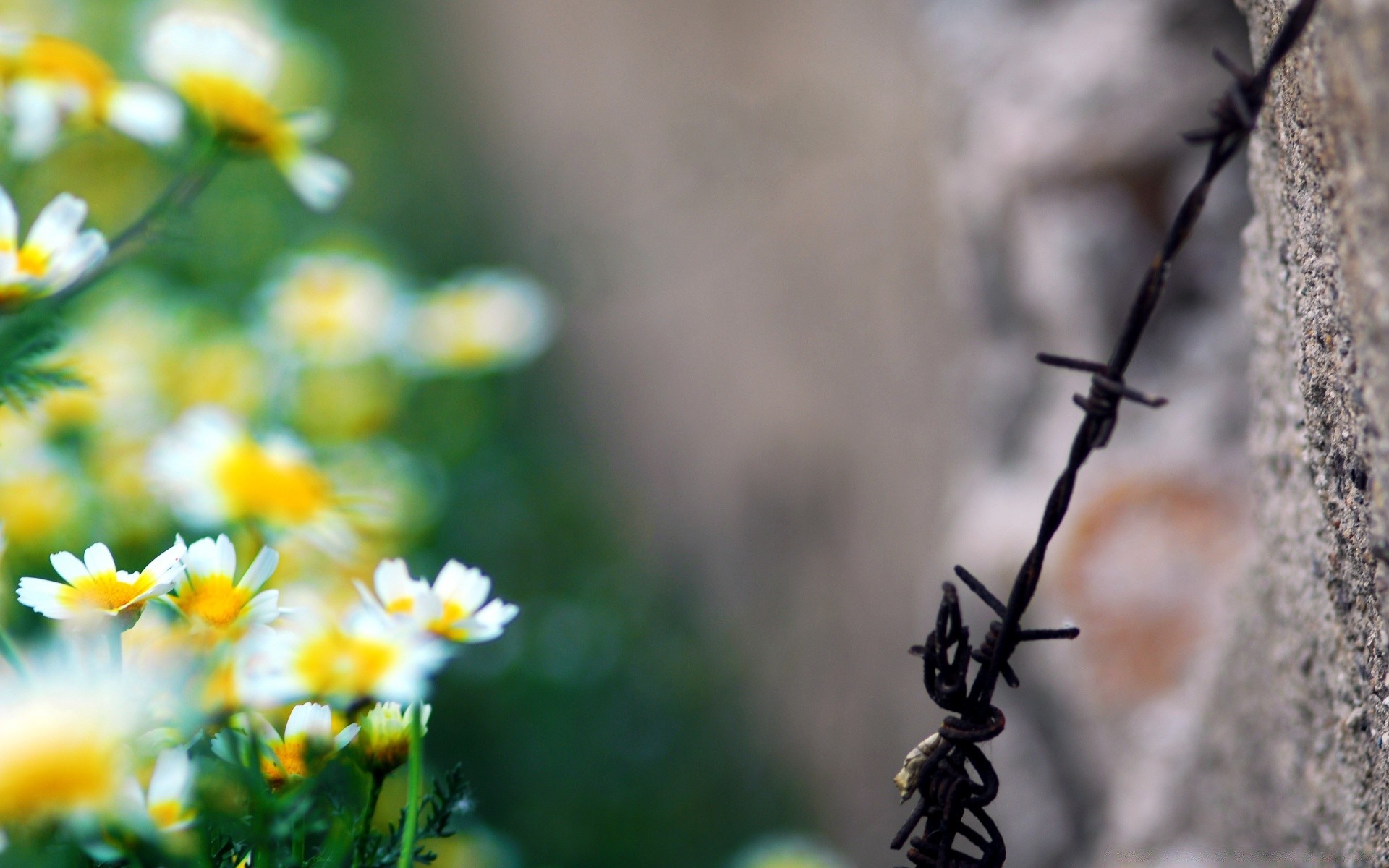 Arame farpado e margaridas brancas