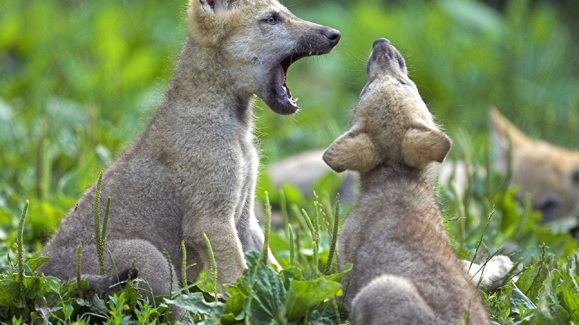 Alguns filhotes pequenos na grama verde