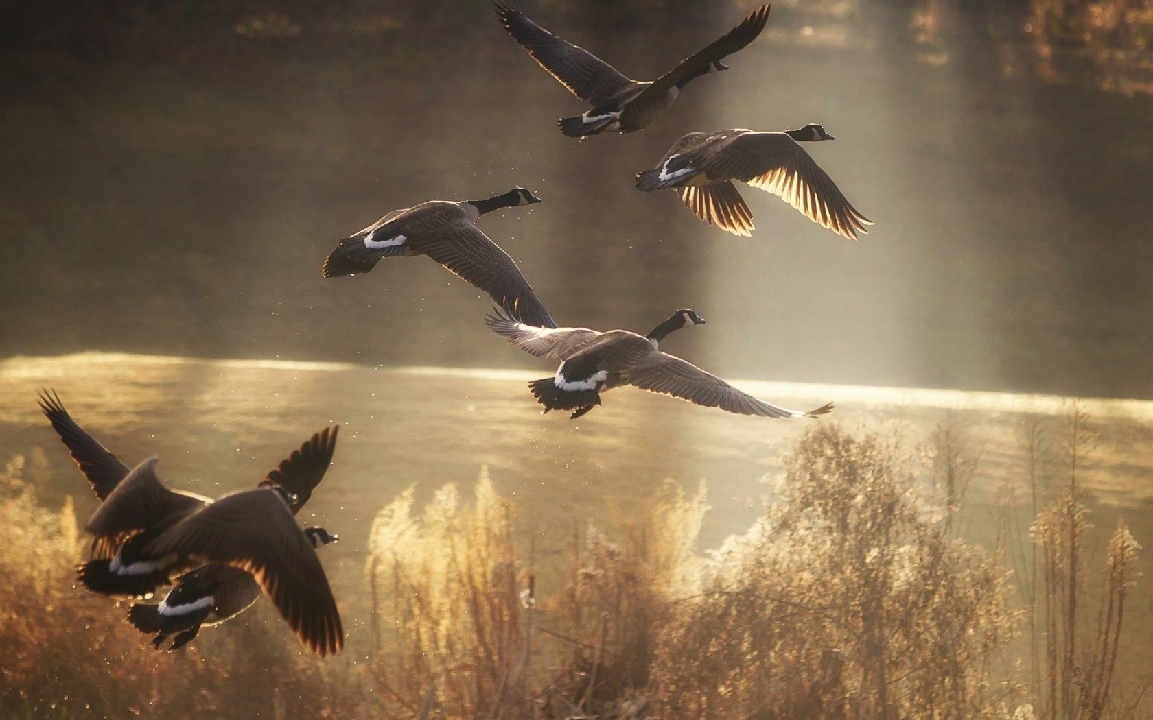 Um bando de patos selvagens no céu