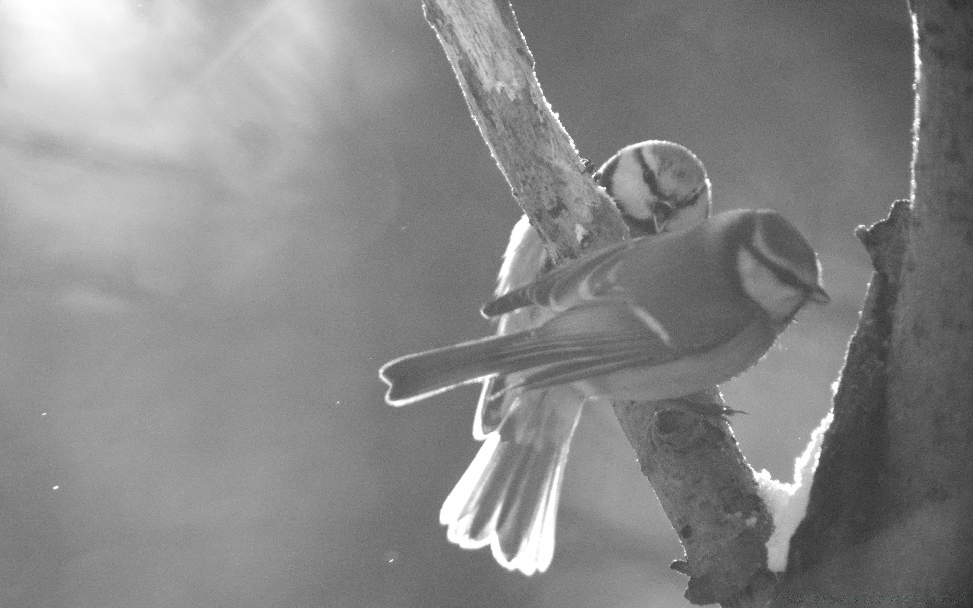 Um par de Tits sentados em um galho