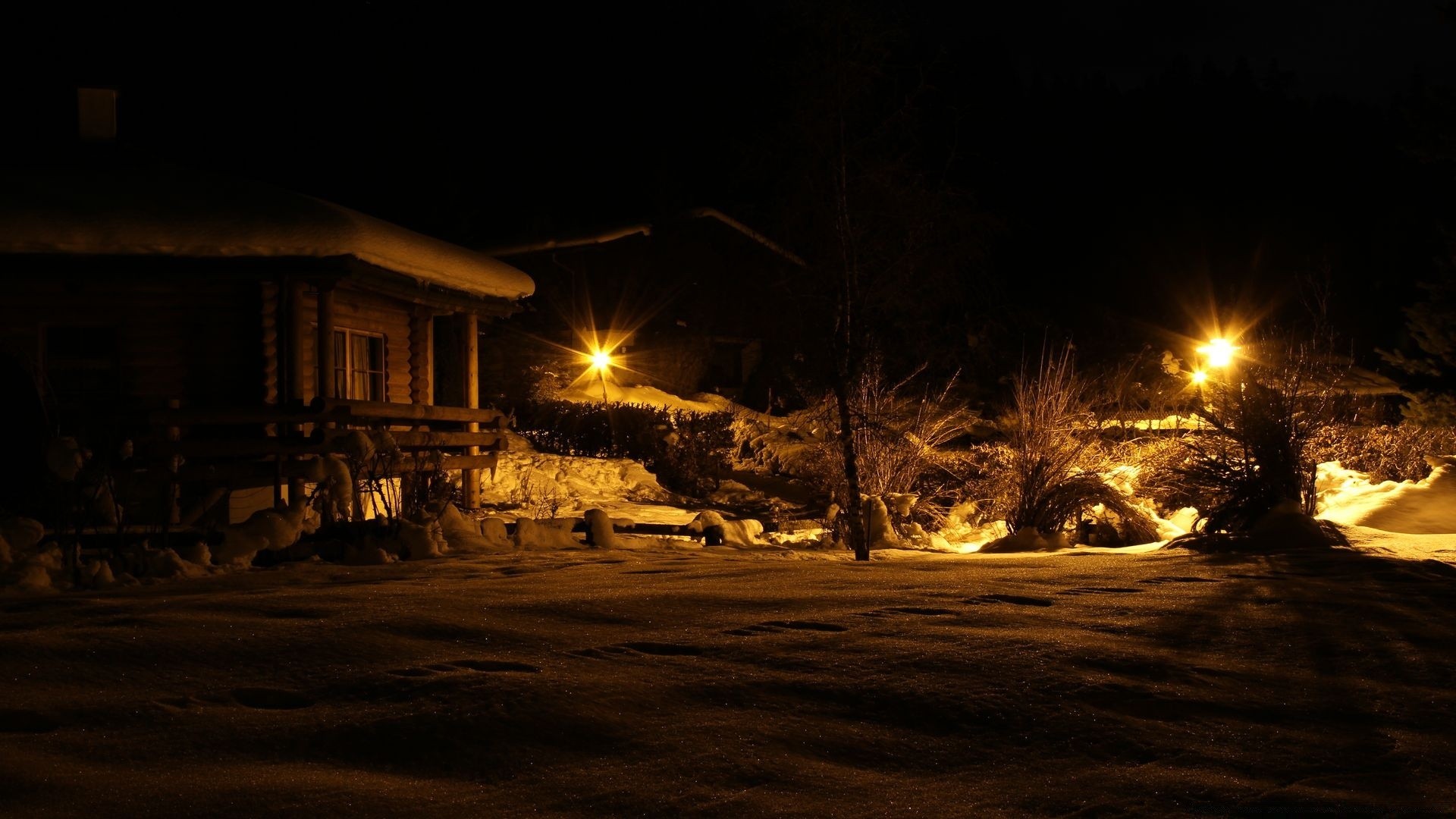 Paisagem de inverno à noite em casa