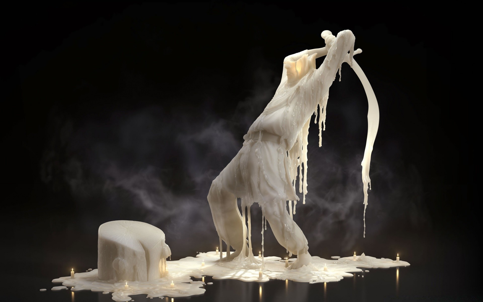 Olho vermelho com pontos pretos, do qual as listras em forma de funil se afastam