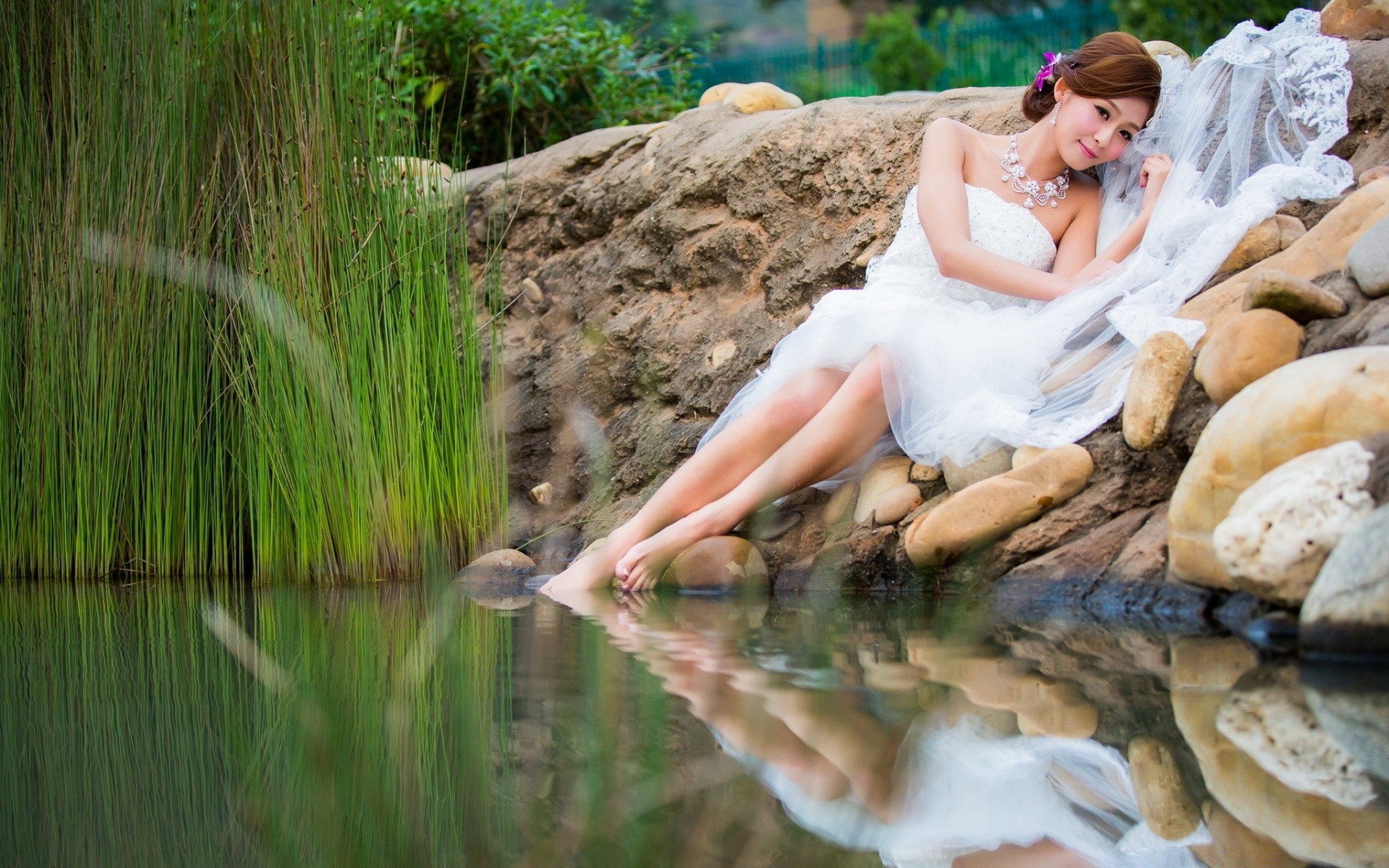 Suporte para um em um tecido branco e decorado com flores brancas no fundo do mar céu azul