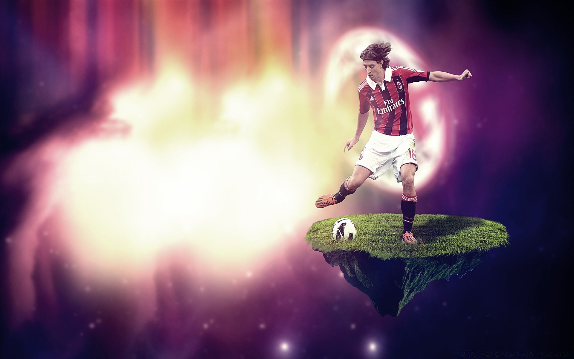 Jogador de futebol com a bola no fundo de uma onda de energia