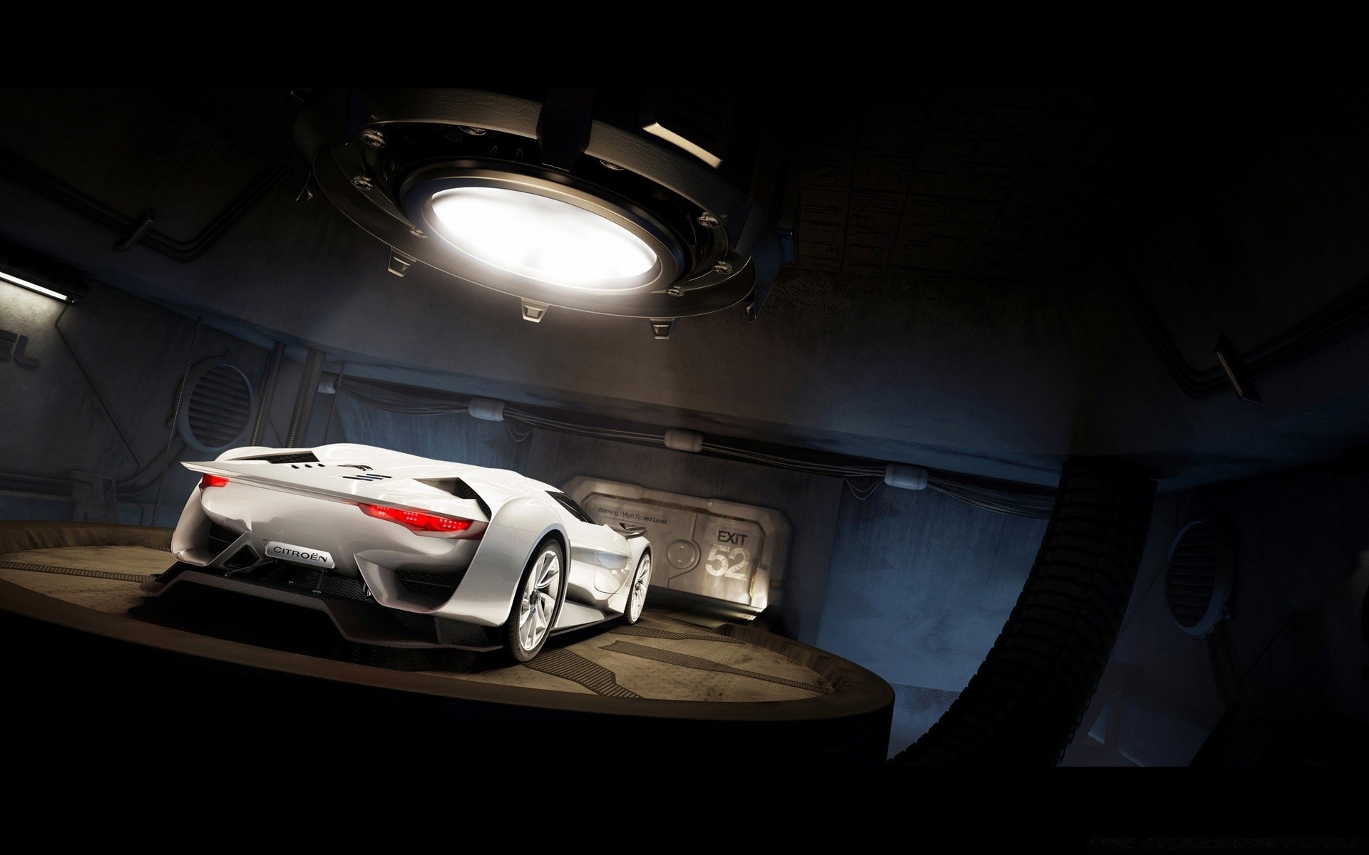 Carro esportivo azul bugatti contra um fundo de palmeiras