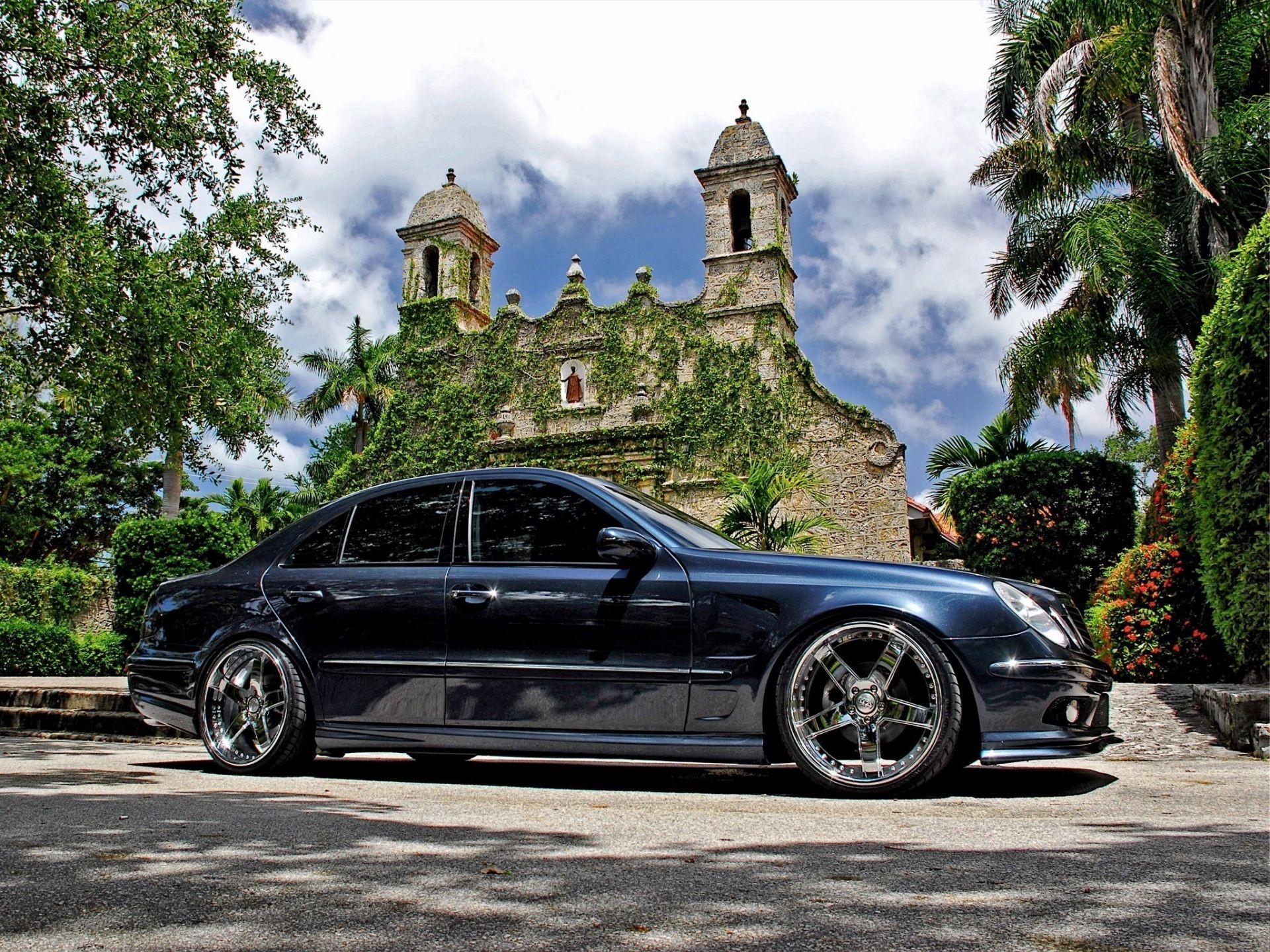 Mercedes esporte branco em flne Night Lights sistema de transporte