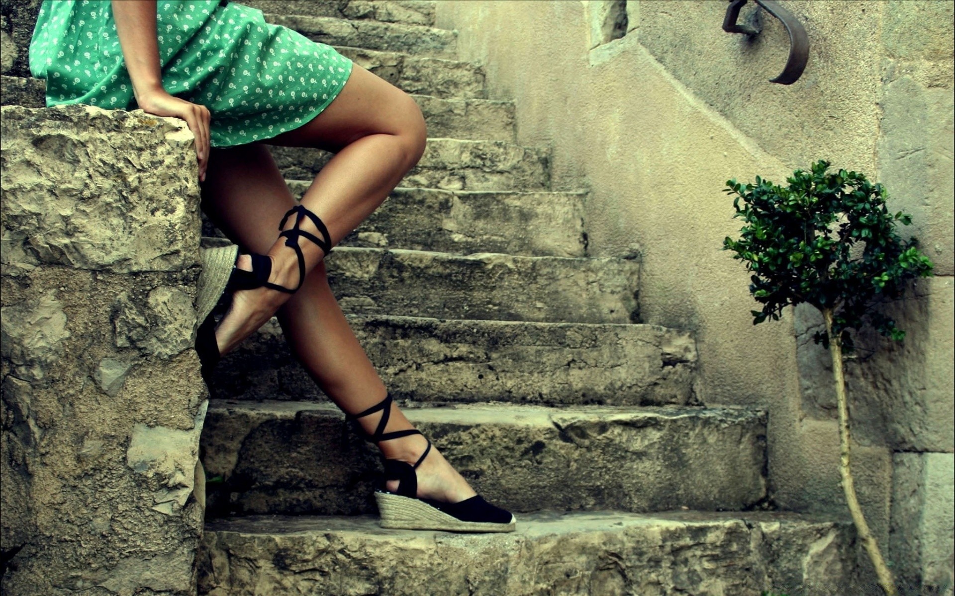 Pés femininos na escada de pedra