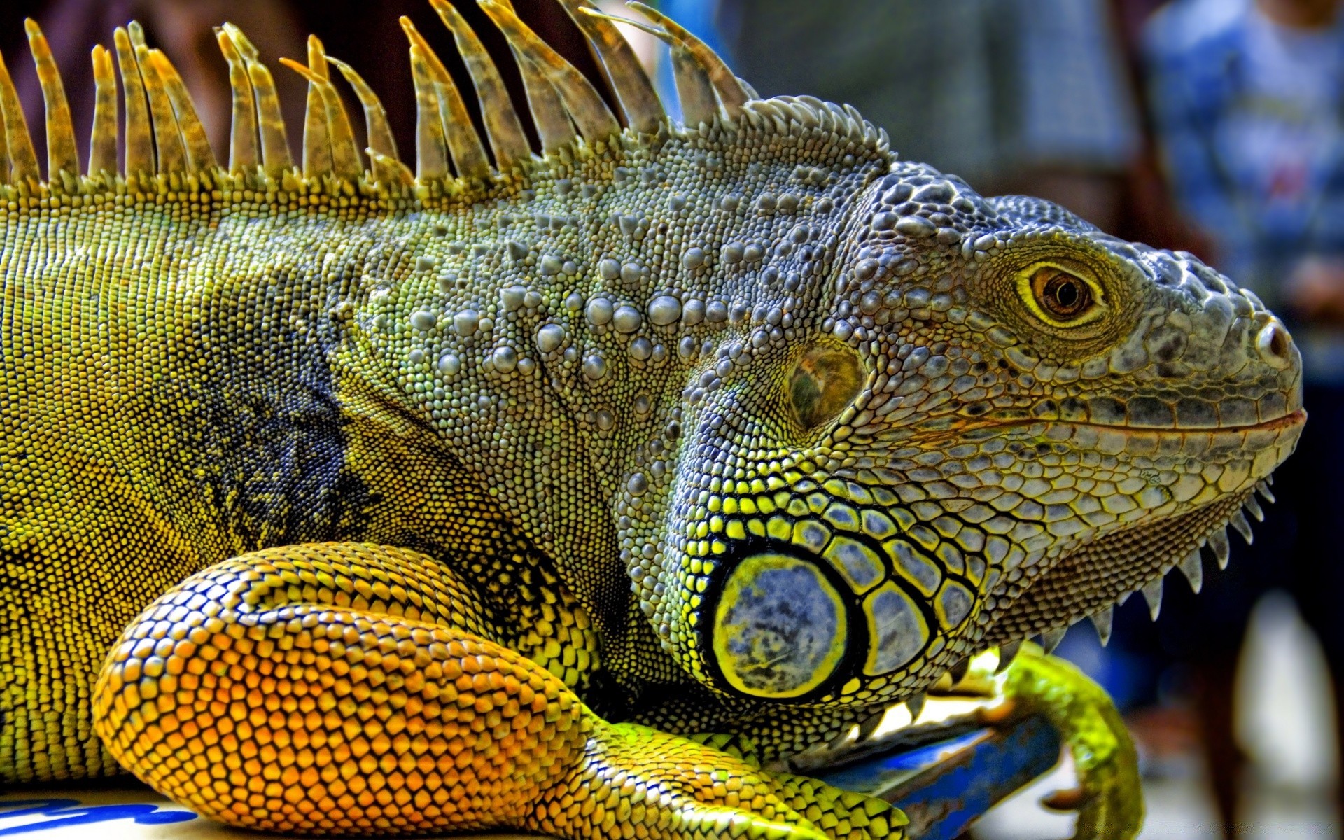 Réptil em um fundo laranja brilhante com um olho luminoso