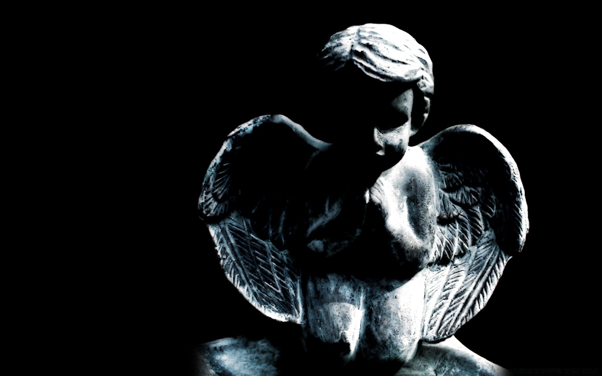 Escultura de anjo em fundo preto