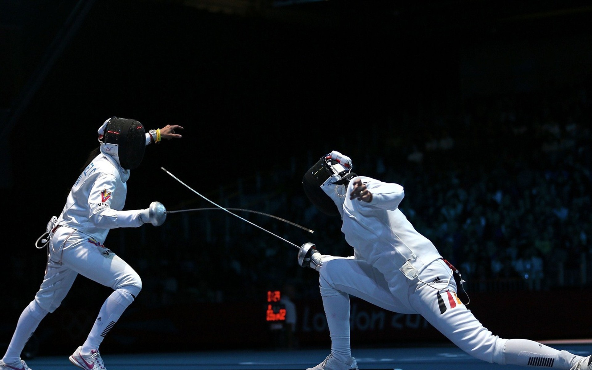 Jogos Olímpicos dois atletas em esgrima