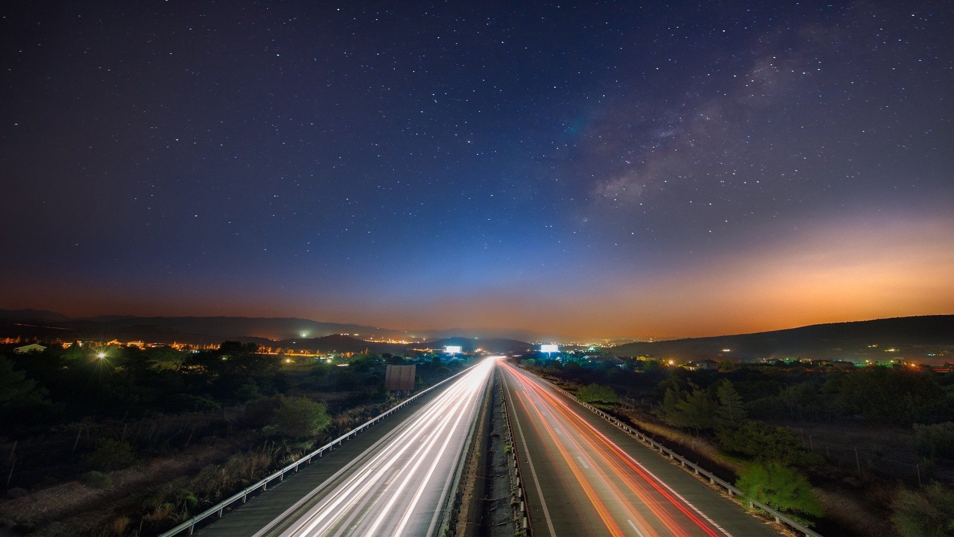 Estradas e céu estrelado