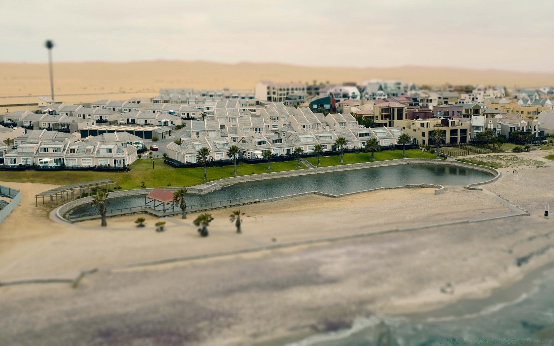 Edifícios altos estão localizados perto do mar
