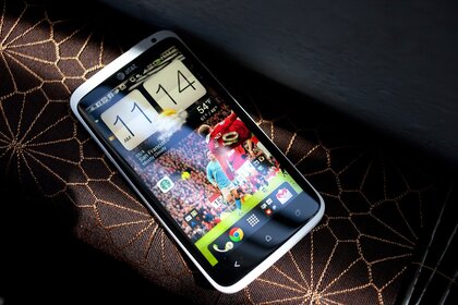 Exibir um novo telefone em um fundo escuro