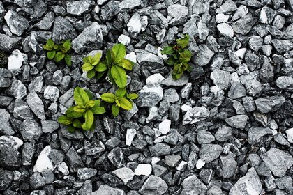 Folhas verdes em pedra preta