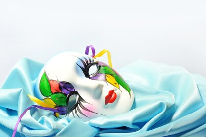 Máscara veneziana com padrões em tecido de seda