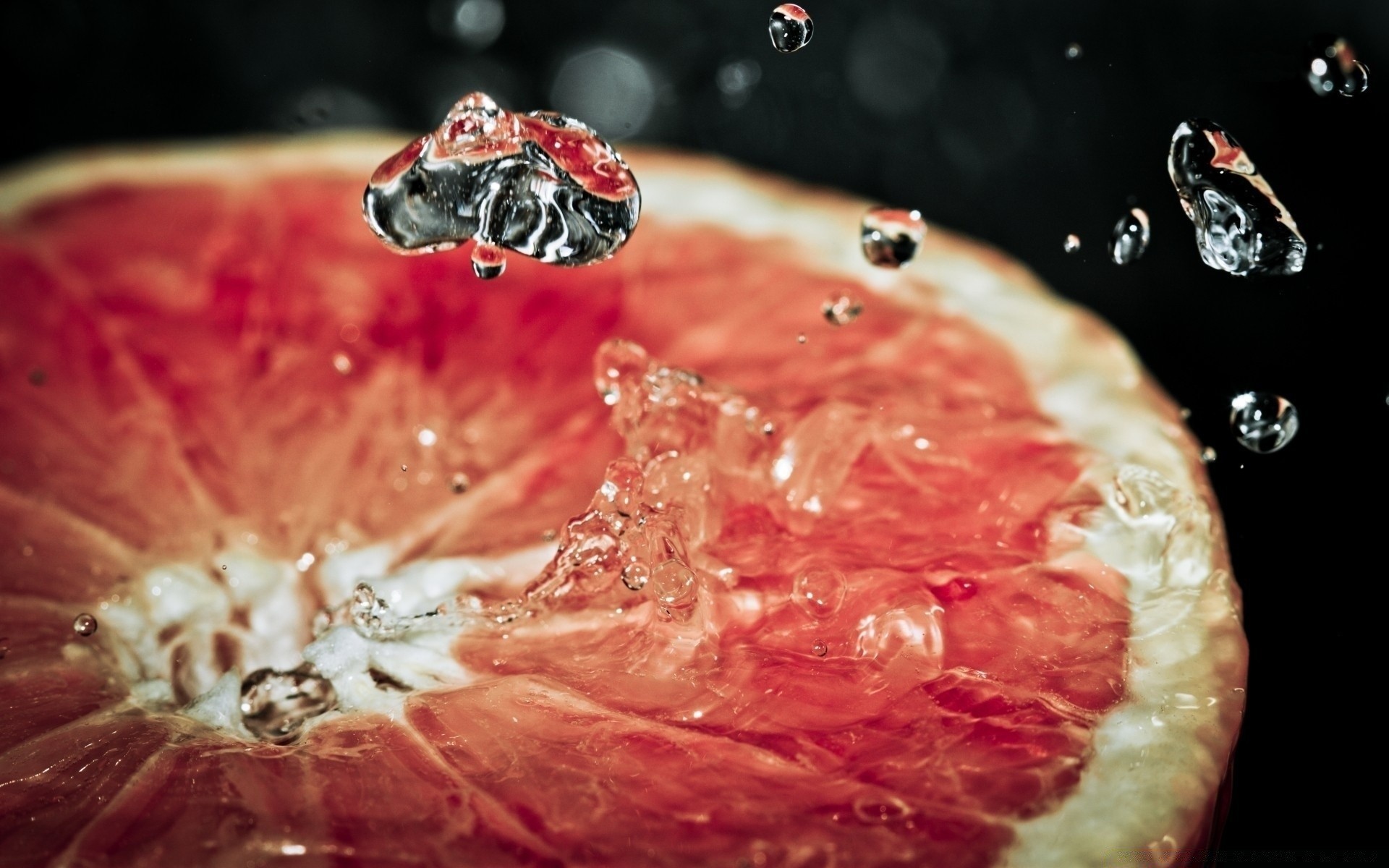Fotografia Macro de gotas Escaldantes na fruta cortada