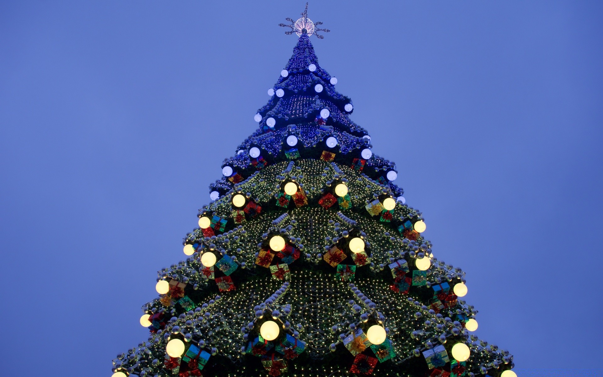 Enorme árvore de Natal decorada com luzes