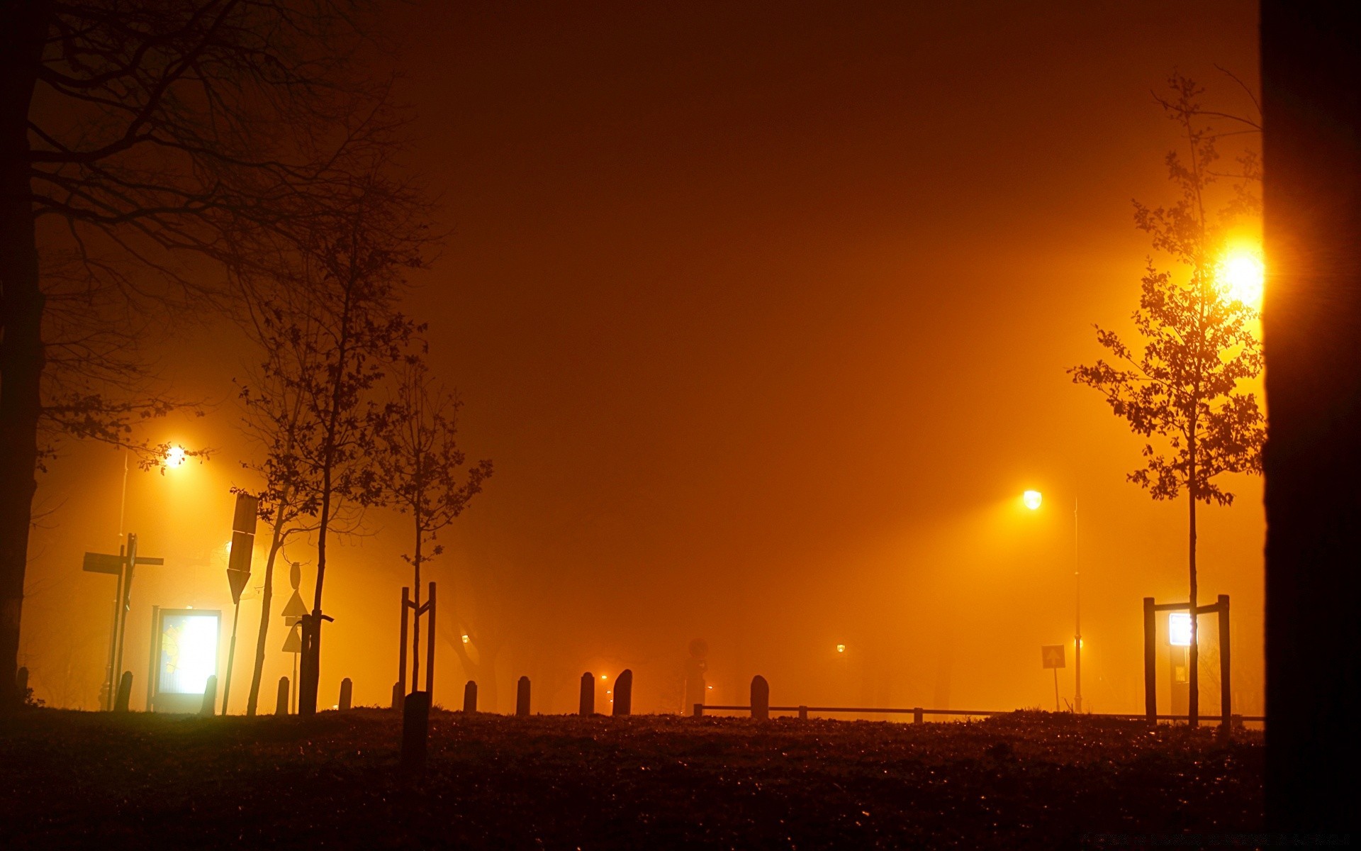 Noite enevoada na cidade vazia