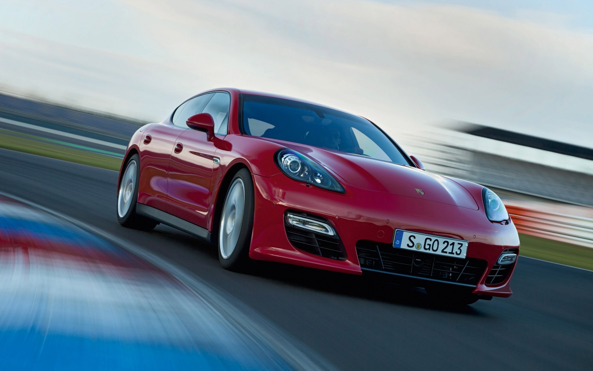 Carro vermelho sintonizado sob um carro esportivo na pista