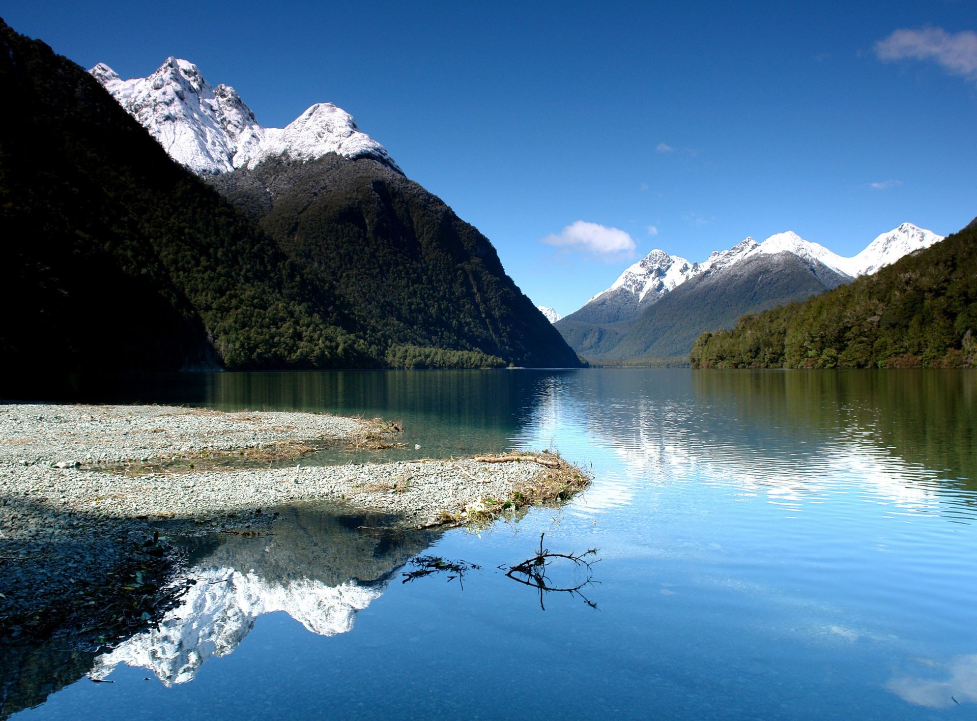 Lago e ao redor da montanha com topos de neve