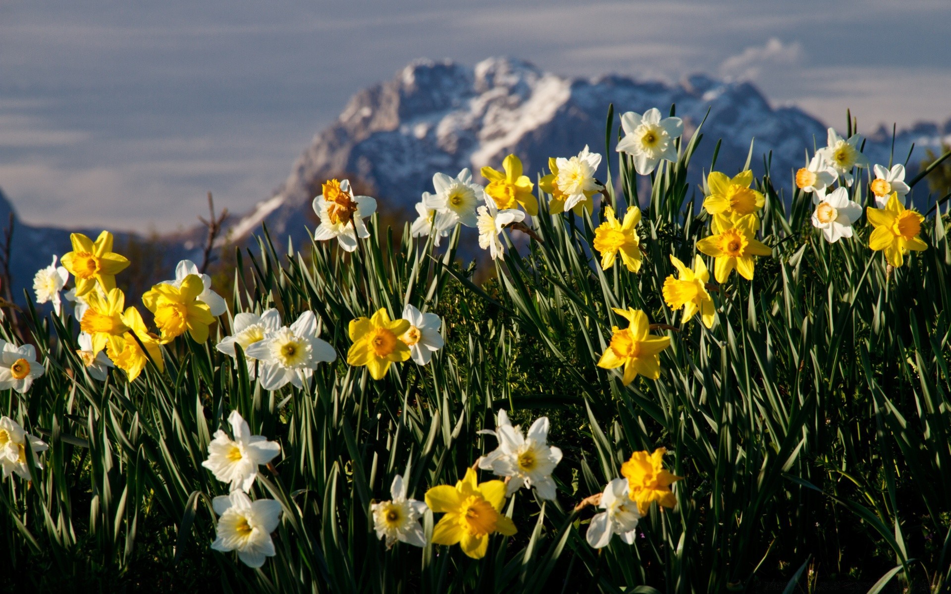 Narcisos da primavera florescem nas montanhas