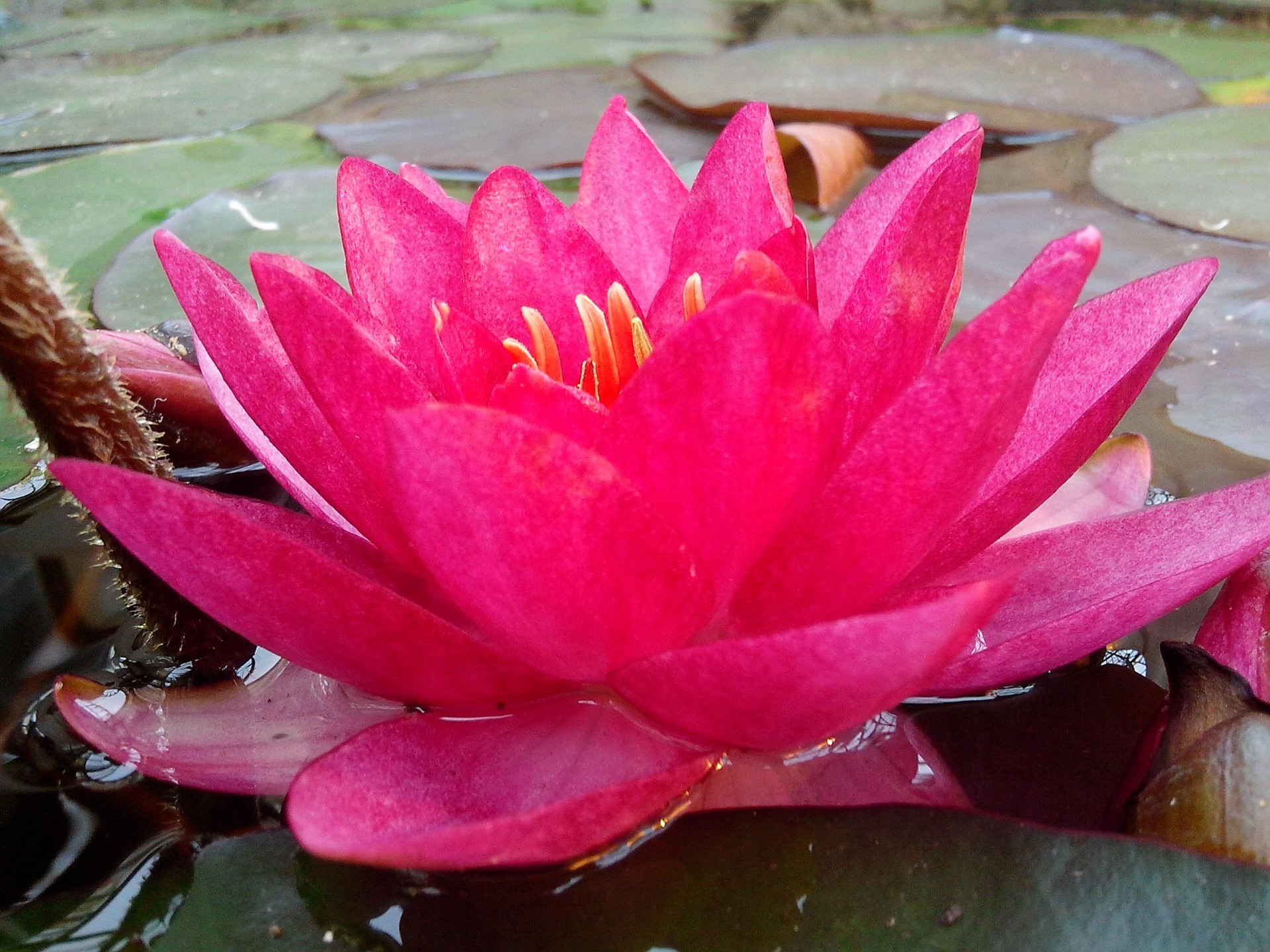 Grande flor de lótus rosa em grande plano no fundo das folhas