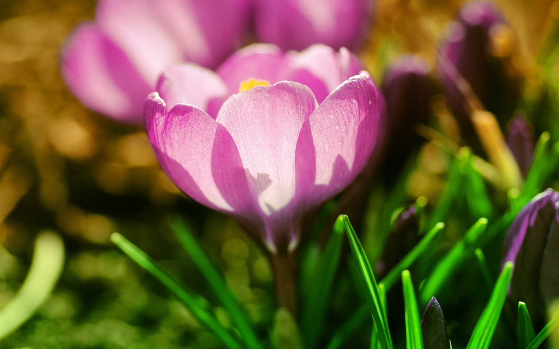 Flor brilhante na grama verde